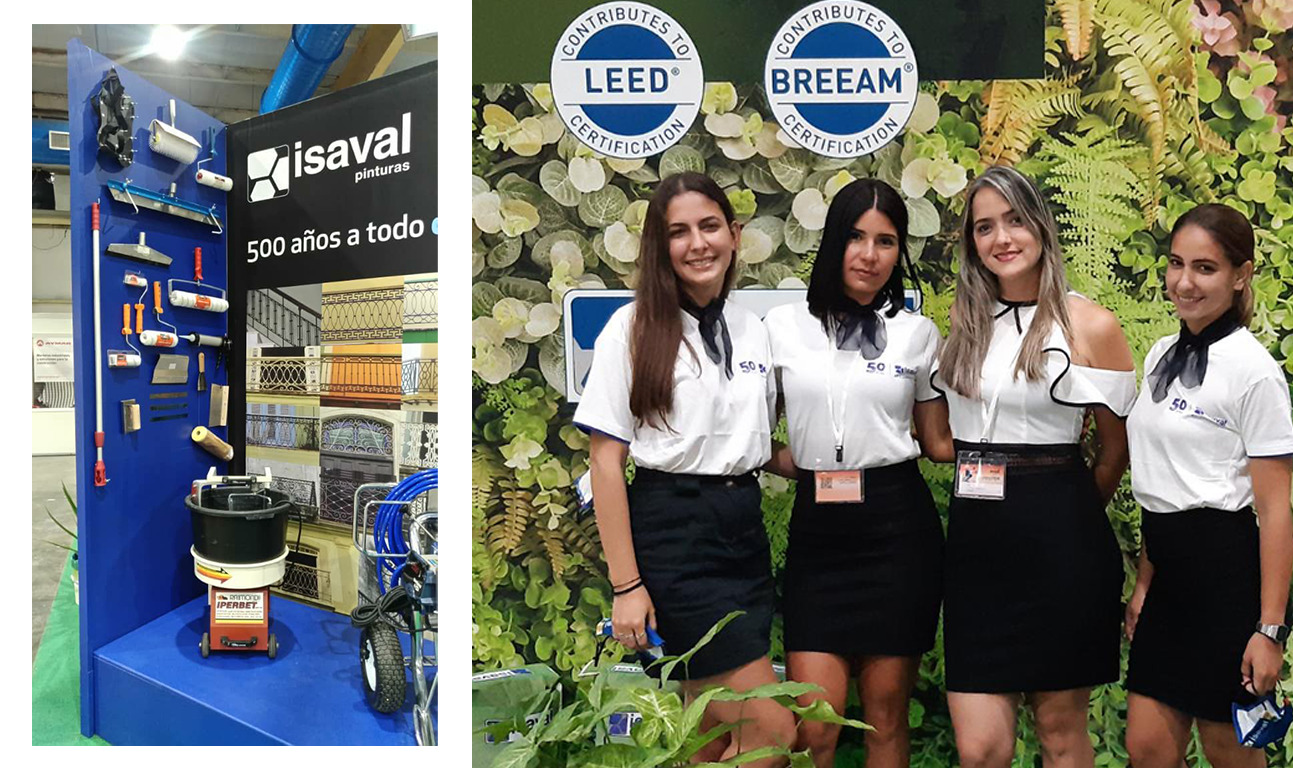 Durante cuatro días, un sinfín de asistentes pudieron ver en el stand 32 de Pinturas Isaval sus últimas novedades en morteros tecnológicos, plastes y masillas, soluciones para pistas deportivas con altas resistencias al impacto y a la abrasión, esmaltes al agua como Esmalte alifático 2Kr aqua, con resinas acrílicas hidroxiladas que le aportan gran resistencia y elevada retención del color en soportes metálicos y no metálicos. Isaval exhibió en primicia la nueva carta de colores Rhevolution colors para fachadas, una selección de 66 colores con la máxima resistencia a la intemperie y más del 25% de reflexión. Colores adaptados a fachadas con las más altas exigencias.
