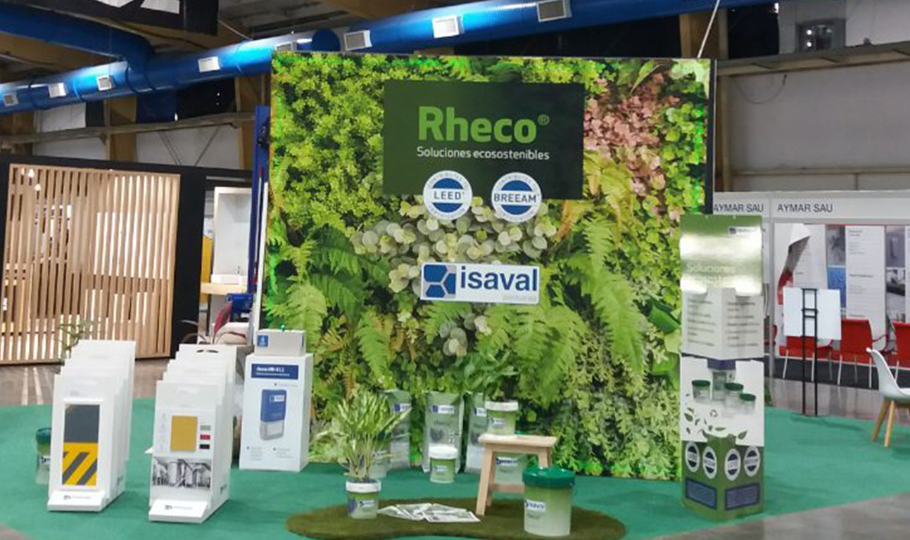 En esta edición de la feria, bajo el lema “Elevar la eficiencia en las construcciones”, Pinturas Isaval ha presentado por primera vez en la isla una línea de productos que contribuye a las edificaciones ecosostenibles y al Green Bulduing: la gama de productos Rheco, que reafirman el sólido compromiso de la empresa por el medio ambiente y su afán por crear soluciones innovadoras según las tendencias del mercado actual.