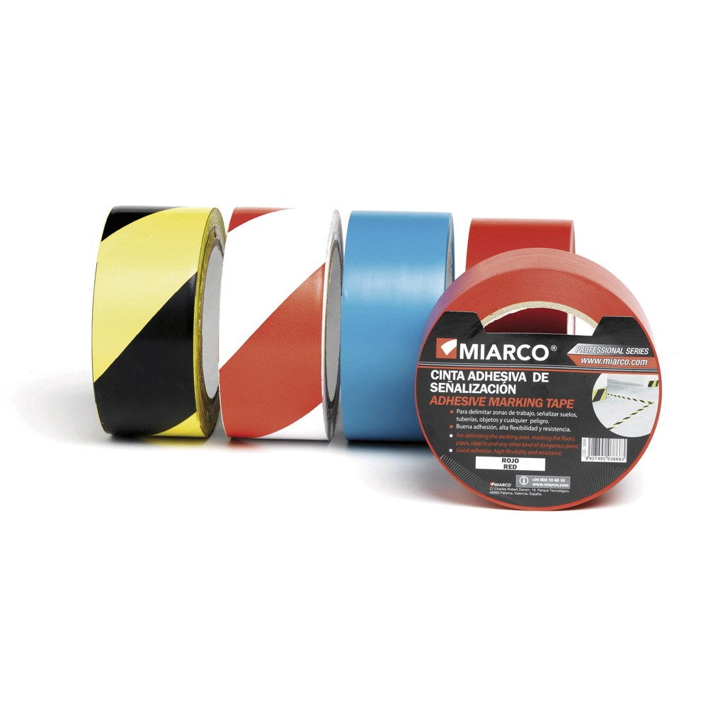Cinta PVC señalización 50mm x 33m blanco/rojo