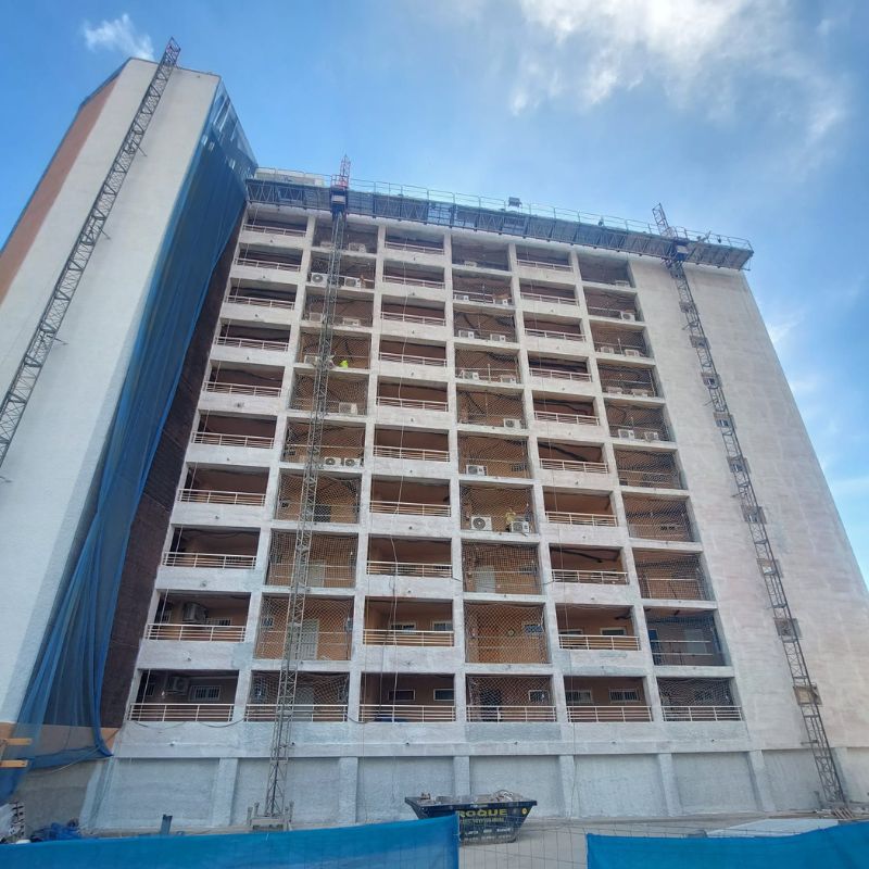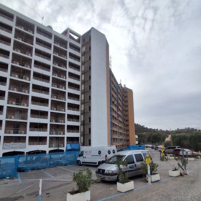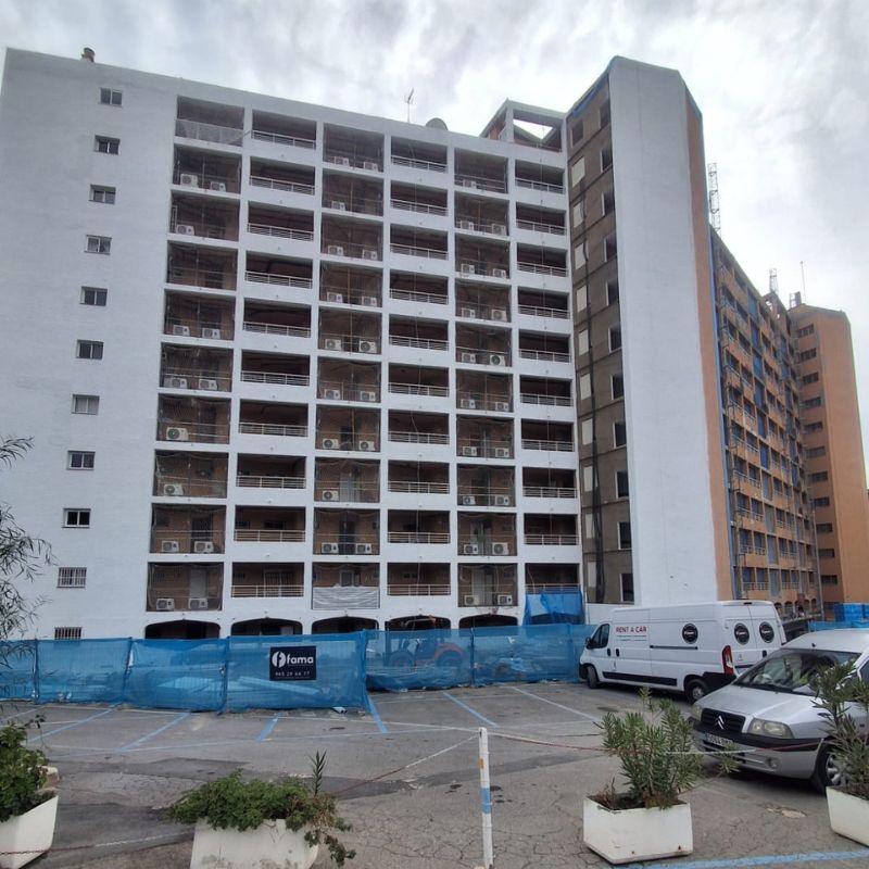 En los Apartamentos Eurotennis Paradise Beach de la Villajoyosa, se ha llevado a cabo una rehabilitación de fachada con el objetivo de renovar la envolvente del edificio y mejorar su protección frente a la intemperie, en un entorno marcado por la proximidad al mar y las condiciones ambientales propias de la costa mediterránea.